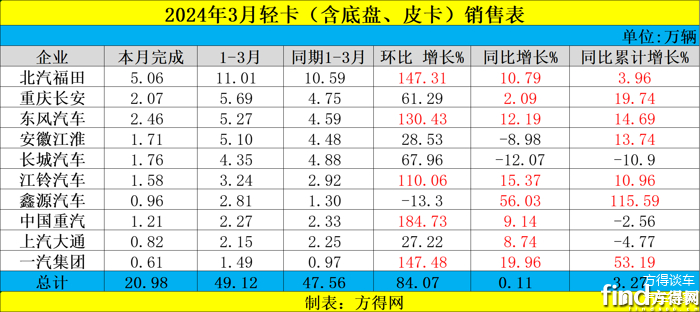 2024年輕卡市場(chǎng)的“金三”來(lái)了!3月,輕卡市場(chǎng)增幅轉(zhuǎn)正,環(huán)比增長(zhǎng)84%,為一季度開(kāi)門(mén)紅畫(huà)下句號(hào)。