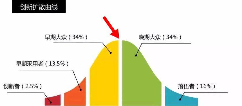 這個“死亡之谷”就橫亙在創新擴散的第二、第三階段之間,大約對應16%的的消費人群。