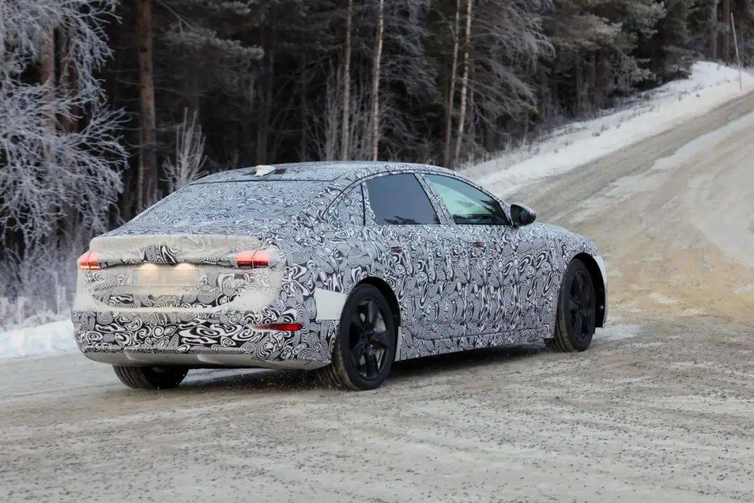 A6L e-tron的測試車目前也在瑞典進行冬季低溫測試,通過這些諜照,我們可以看出它與標準軸距版本的差異。首先當然是在標軸版的基礎上,軸距進一步加長了100毫米左右,估計將達到3050毫米的水平(作為參考,Q6L e-tron的軸距加長了105毫米,達到2995毫米)。