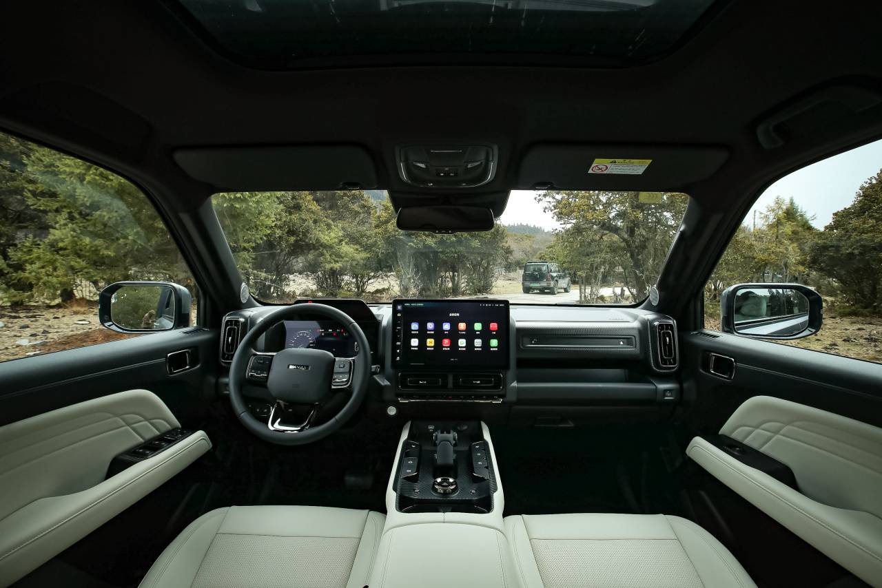 作為方盒子,性能及通過性尤為重要。新車提供更大輪胎尺寸,胎寬從245mm提升至255mm、265mm兩種可選,更寬的輪胎擁有更好的抓地力,整車的操穩性和舒適性進一步提升;通過性提升,接近角25°、離去角32°、縱向通過角20.1°,最小離地間隙由200mm提升至221mm,涉水深度由560mm提升至580mm,讓車輛的越野實力進一步提升,拓展更多場景。