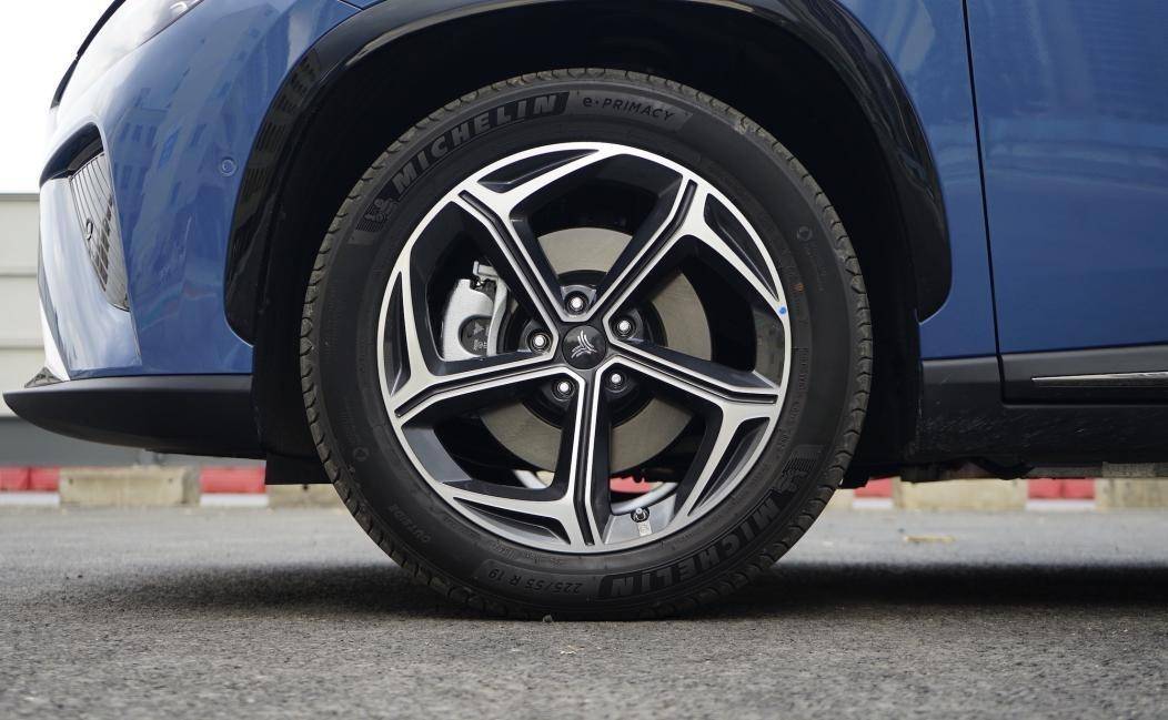 19英寸雙色輪圈有一定的運(yùn)動(dòng)感,輪胎尺寸為225/55 R19,胎寬夠用,匹配米其林e-Primacy系列產(chǎn)品,干濕地抓地性都出色,還有不錯(cuò)的靜音效果。