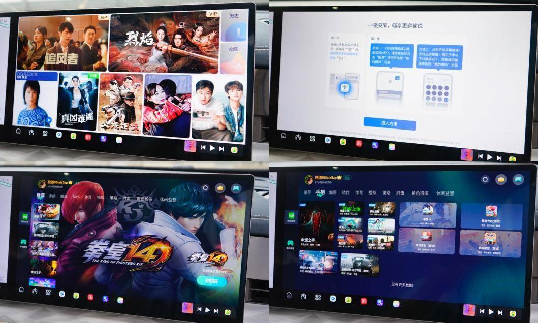 副駕屏也是15.6英寸,集成豐富的視聽(tīng)APP,還可以一鍵投屏,把手機(jī)的內(nèi)容投射過(guò)去。提供兩個(gè)游戲手柄和兩個(gè)麥克風(fēng),玩游戲或唱K都很方便。