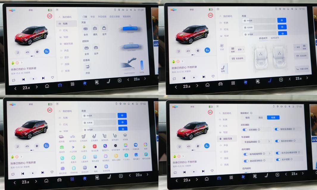 15.6英寸中控屏邊框還算窄,底部保留實(shí)體觸控鍵,由高通8155芯片帶動(dòng),流暢性不錯(cuò)。屏幕左側(cè)保留固定的行車(chē)信息區(qū),包含基礎(chǔ)車(chē)控,如尾門(mén)開(kāi)關(guān)、外后視鏡調(diào)節(jié)、加油口和充電口開(kāi)啟等。右側(cè)功能控制區(qū)有固定豎列菜單,各種功能控制邏輯清晰,二三級(jí)菜單逐步向右展開(kāi),硬件集成化程度很高,提供快捷小桌面直接調(diào)節(jié)空調(diào)和常用APP,交互做得比較好用。語(yǔ)音系統(tǒng)支持雙音區(qū)定位,可連續(xù)對(duì)話,但多指令輸入常會(huì)有遺漏。