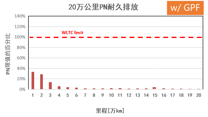■b)帶 GPF的2 0萬公里耐 久PN排放