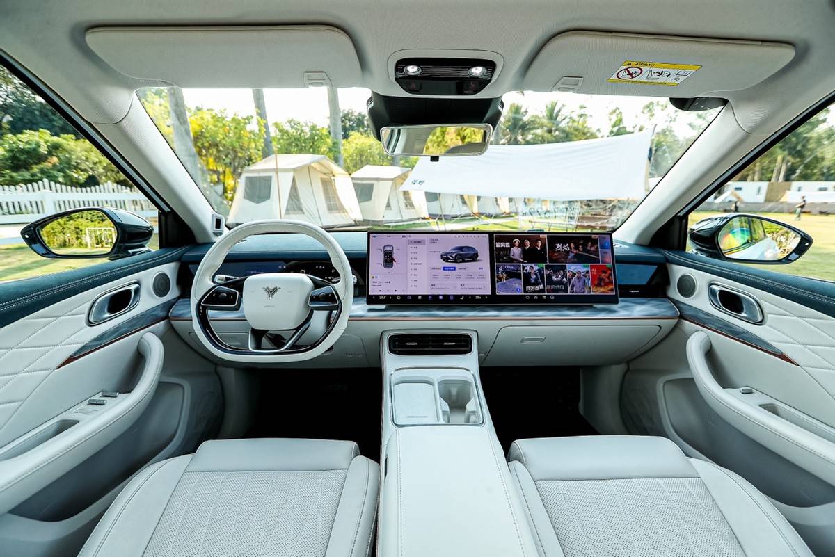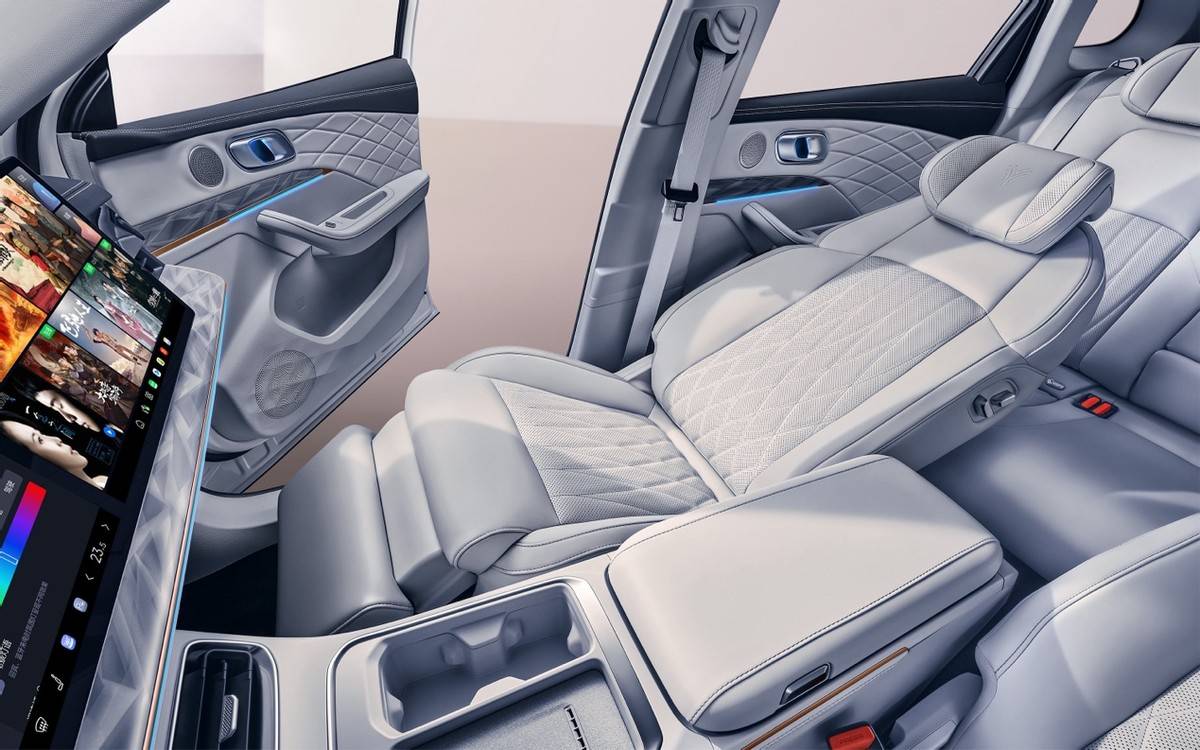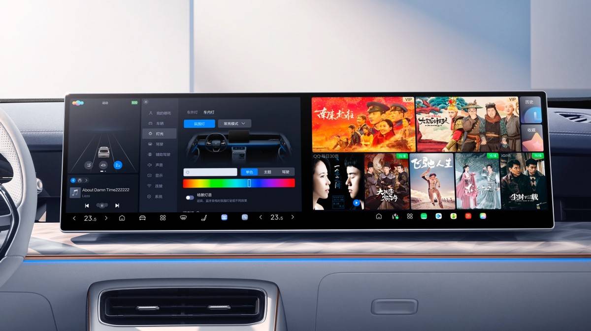 哪吒L的車(chē)內(nèi)空間采用360°環(huán)抱式座艙設(shè)計(jì),配合大量軟質(zhì)內(nèi)飾、隱藏式儀表屏、雙15.6英寸超窄邊全高清屏“大彩電”。采用高通驍龍8155P高性能芯片,京東方LTPS高端屏擁有1920*1080 FHD全高清分辨率,6.7mm窄邊、12mm極致輕薄,鋁鎂合金邊框,兼顧性能、良好的觀看效果和觸感。