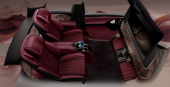 四座高定版將中國傳統文化中的“龍”元素融入外觀設計中,展現了極致奢華的美學。內飾采用“榮耀御庭”風格,以赤龍紅為主調,細節處使用金色裝飾件,座椅選取NAPPA真皮包覆,“龍頂在天”內頂設計及融合了光影藝術的迎賓設計,帶來耳目一新的低調奢華之感。