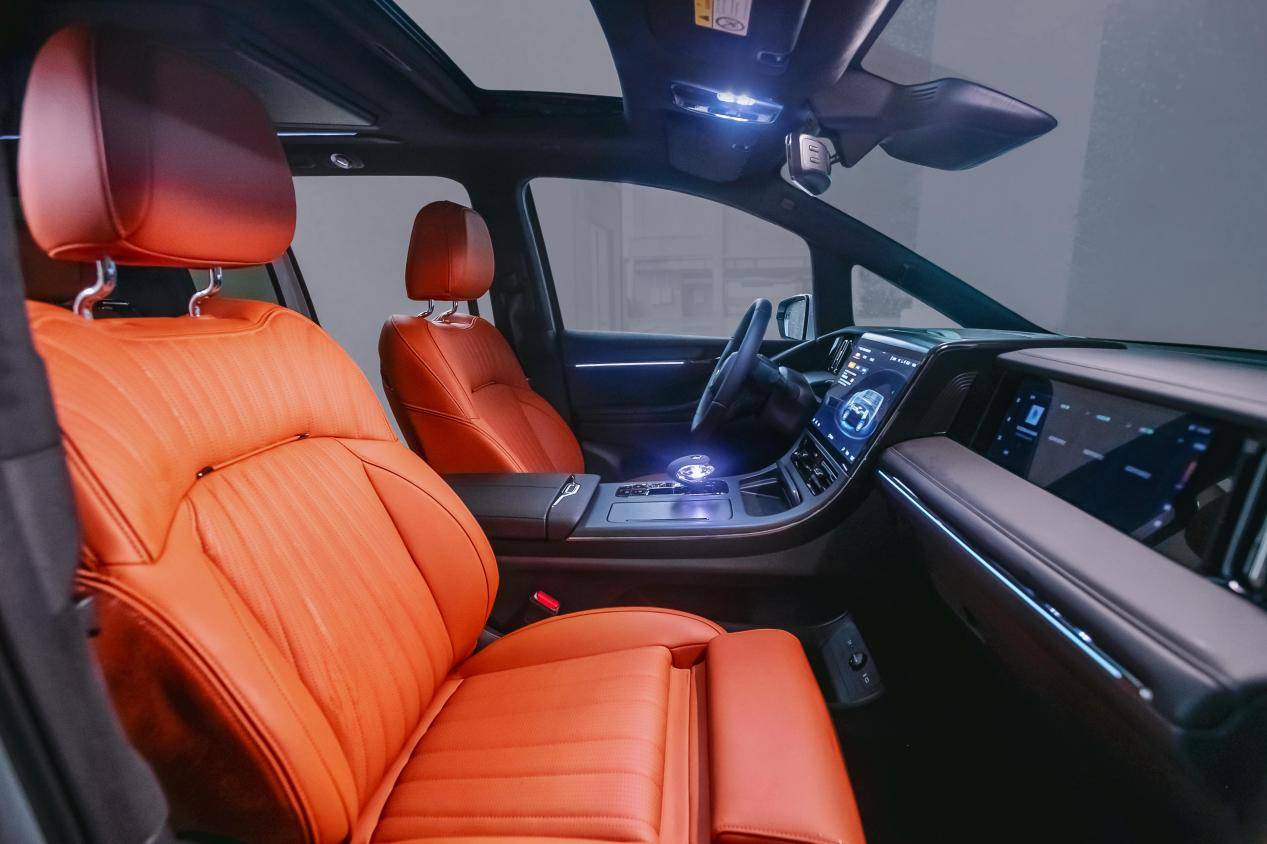 座椅方面,前排座椅搭載了同級最長的560mm伸縮座墊,新增同級領先的SPA級10點式按摩功能。按摩點位升級為3層氣袋,并進一步降低按摩氣袋噪音,讓駕乘人員盡管在奔波的旅途中,身體都依然得到深層放松。二排座椅升級采用同級獨有的半苯胺頭等艙座椅,在一鍵SPA模式下,二排座椅腿托調節和靠背調節時可自動識別防夾。此外,二排滑軌還進行了軟件優化,提升平順絲滑感。三排座椅坐姿抬高25mm,座墊加長5mm、加厚25mm,三排坐墊支撐性更好,坐姿更舒展。前排、二排、三排座椅的全方位優化升級,讓車內每一個人都盡享最舒適的一排。