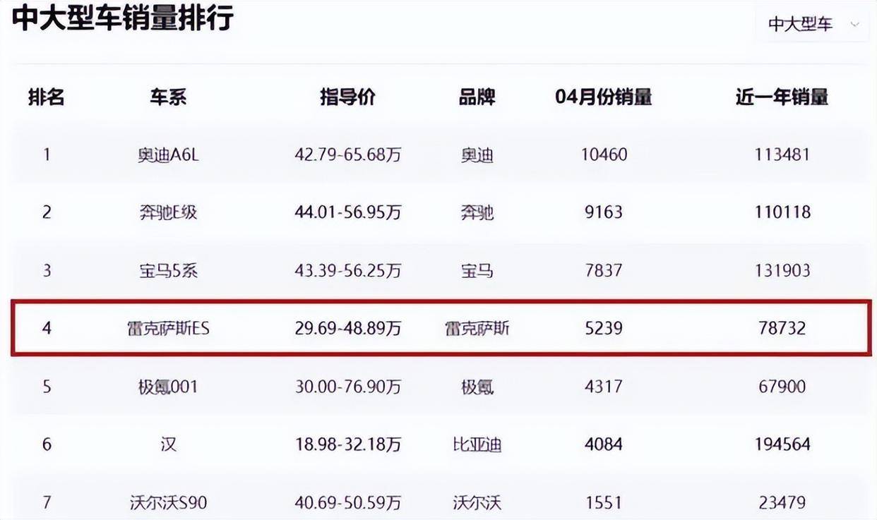 曾經(jīng)月銷過(guò)萬(wàn)的雷克薩斯ES,在2024年的4月份銷量幾乎腰斬,只賣出了5239臺(tái)。而雷克薩斯的其他車型銷量幾乎可以忽略不計(jì)。