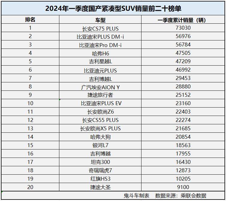 緊湊型SUV市場一直是各大汽車品牌的必爭之地。現(xiàn)在,這一細分市場中,國產(chǎn)緊湊型SUV憑借著新能源產(chǎn)品優(yōu)勢,銷量勢頭很猛,乘聯(lián)會數(shù)據(jù)顯示,2024年一季度國產(chǎn)緊湊型SUV市場累計零售銷量達到74.6萬輛,同比增長9.8%。