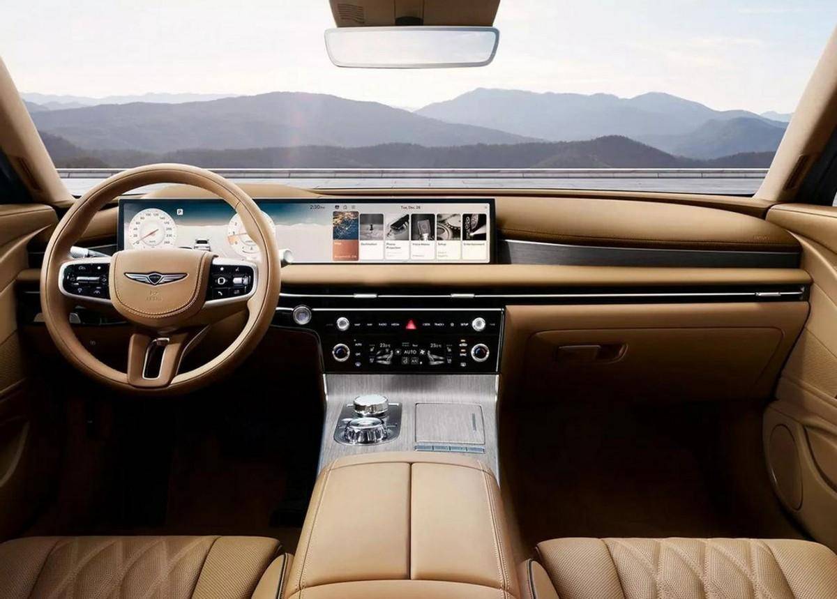 相較于外觀,新款捷尼賽思G80內飾方面可以說是充滿了驚喜,第一眼看過去給人感覺極具科技感,新車采用了全新27英寸OLED一體式顯示屏,并且,新車后排還配備有娛樂大屏,除此之外,新車還配備有:前方防止碰撞輔助、盲區碰撞輔助、遙控智能泊車輔助2、高速公路駕駛輔助2等等,做工以及用料上也很扎實,所見之處大面積皮革材質的覆蓋,加上貫穿式的空調出風口,以及細節之處的縫線處理,從而一定程度上增強了整體內飾的豪華感,此外,新款捷尼賽思G80運動版車型還采用了D型的運動方向盤以及碳纖維飾條等等,以此來表面自身與眾不同的身份。