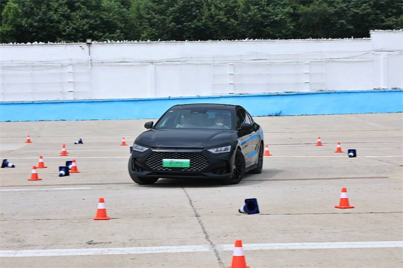 而在蛇形繞樁、雙移線、等路況下,并沒有感到笨重感。而且,快速左右打方向,明顯感覺到外側有一股力量給予支持,能夠讓車身動態不被輕易打破。