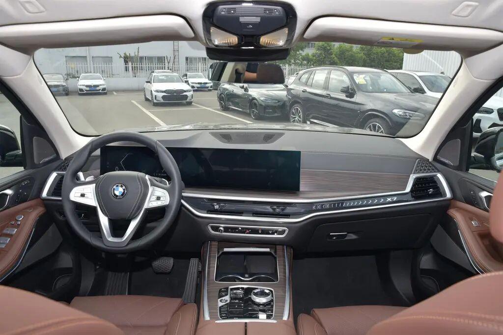 相比之下,寶馬X7則是采用家族式最新的設計語言,尺寸巨大的雙腎式進氣格柵以及分體造型的頭燈組合,整個前臉看起來頗為科幻犀利。另外側面也是標準的全尺寸SUV形象,如果單從身板來看的話,這款寶馬X7絕對稱得上是巨無霸。不過較為平淡的線條勾勒,視覺效果并沒有攬勝運動版表現出色。車尾部分,寶馬X7使用上窄下寬的整體布局,對稱設計的尾燈組合,中間加入了鍍鉻飾條進行橫貫,進一步延展了視覺寬度,搭配下方雙邊雙出的排氣布局,論起運動感營造,其表現還是比較到位的。