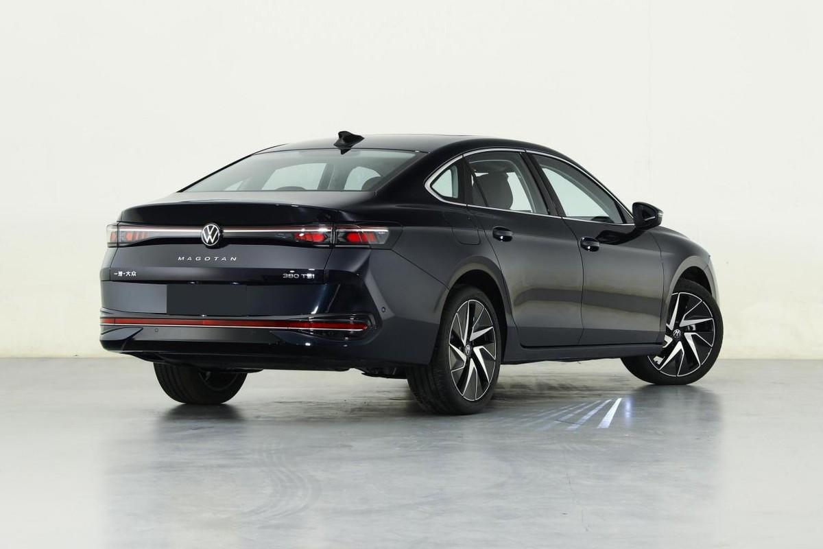 從側后方向來看,邁騰的腰線還是貫穿連接了前后車門把手,線條比較尖銳而下方出現了淺溝壑,在前端消失在了前翼子板處,而在后端則進入到了尾燈的邊角位置。同時,車尾除了有一個比較軟潤的鴨尾外,中央的熏黑尾燈與下方帶黑色裝飾配件的反光帶都實現了左右貫穿,前者采用了大眾Surface LED面光源技術。同時,后保險杠不再提供裸露的排氣管,而是采用了下置式的隱藏處理,既能夠在尾箱蓋上形成比較豐富的層次,又能通過這樣的簡化處置讓車輛顯得干練一些。