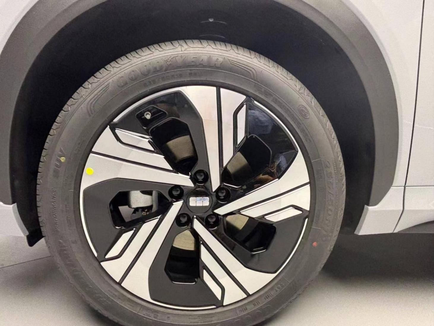 這臺吉利銀河E5用的是固特異的輪胎,參數是235/50 19寸的輪轂,偏向家用舒適的取向。車身側面沒有過多的線條,圓潤的車身型面十分動感,再加上隱藏式的門把手,整個側面顯得更加渾然一體。至于尺寸,這臺車有著4615mm的車長,2750mm的軸距,比元PLUS大一些又比宋PLUS小一些。