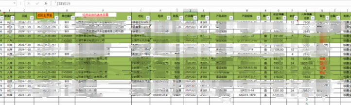 處理前工作表就是每月逐行來錄入表格出入庫記錄混在一起,在勤哲EXCEL服務平臺處理后表單后續統計做跟蹤追溯。