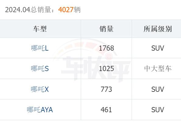 也就是說,哪吒汽車4月9017輛的銷量數據中,有將近5000輛車可能都銷往了海外市場。如果不是哪吒L的上市,哪吒汽車4月國內的銷量就會降至2300輛以下。