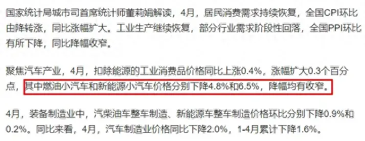 統計局剛剛公布最新的數據,傳遞出汽車價格反彈的信號。4月,燃油小汽車和新能源小汽車價格分別下降4.8%和6.5%,降幅均有收窄。從中可以看出,汽車行業競爭環境有所好轉,價格開始修復,價格戰已階段性趨緩,從近期上市的新車里也證實了這點。