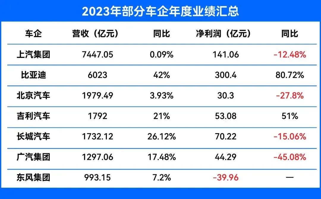 雖然汽車市場看起來一副欣欣向榮的景象,但事實上,在這場內卷里,大多數選手的后果都一樣——殺敵一千自損八百。這波烈度空前的價格戰,對全行業的盈利造成了巨大壓力。據轱轆哥不完全統計,15家上市車企在2023年均實現營收增長,但其中多達9家陷入增收不增利的局面。