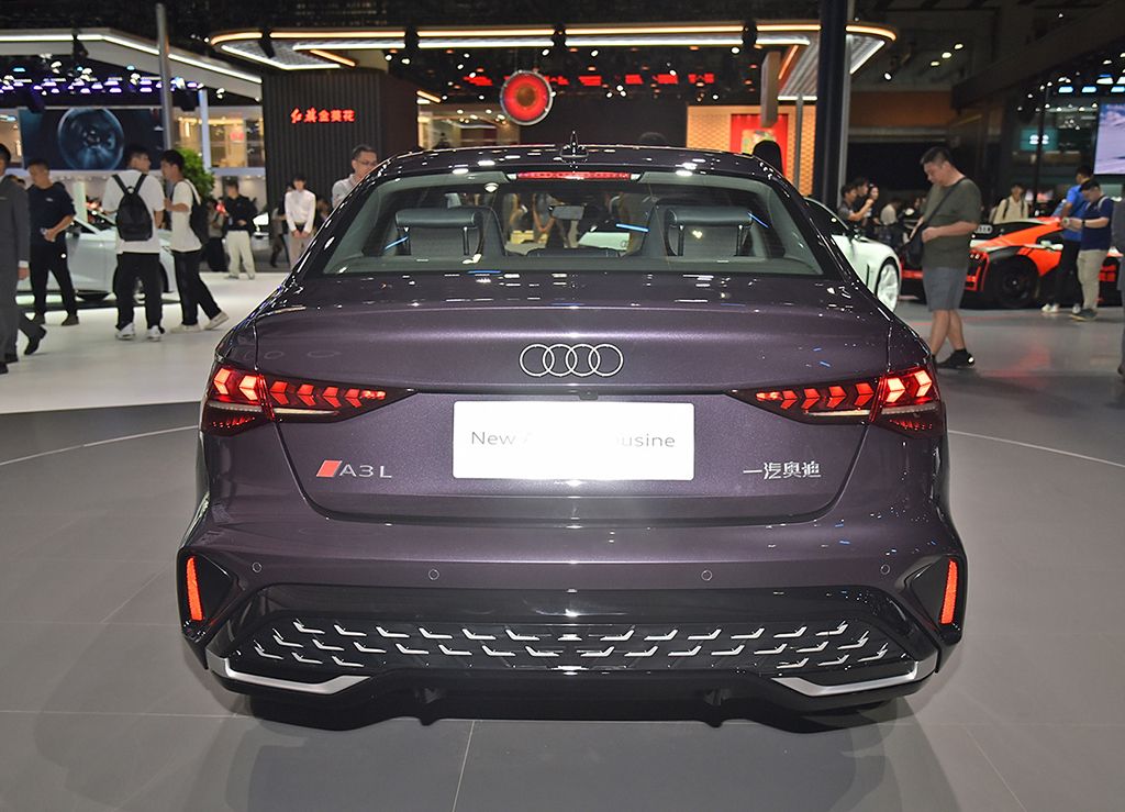 2025款奧迪A3三廂版的車側則更加注重優雅與和諧。車身線條簡潔流暢,沒有過多的修飾,卻展現出一種高級感。腰線從前翼子板貫穿至尾燈,與車門下方的折線相呼應,營造出一種立體感。車頂線條平緩,與車尾過渡自然,給人一種穩重而不失靈動的感覺。2025款奧迪A3三廂版的車尾則顯得更加精致。尾燈組采用了全新的造型,內部結構復雜且富有層次感,點亮后視覺效果出色。車尾下方配備了隱藏式排氣布局,看起來更加簡潔大方。整個車尾線條圓潤飽滿,與車身整體風格相得益彰,不過車尾下包圍設計有些用力過猛,看上去不太協調。