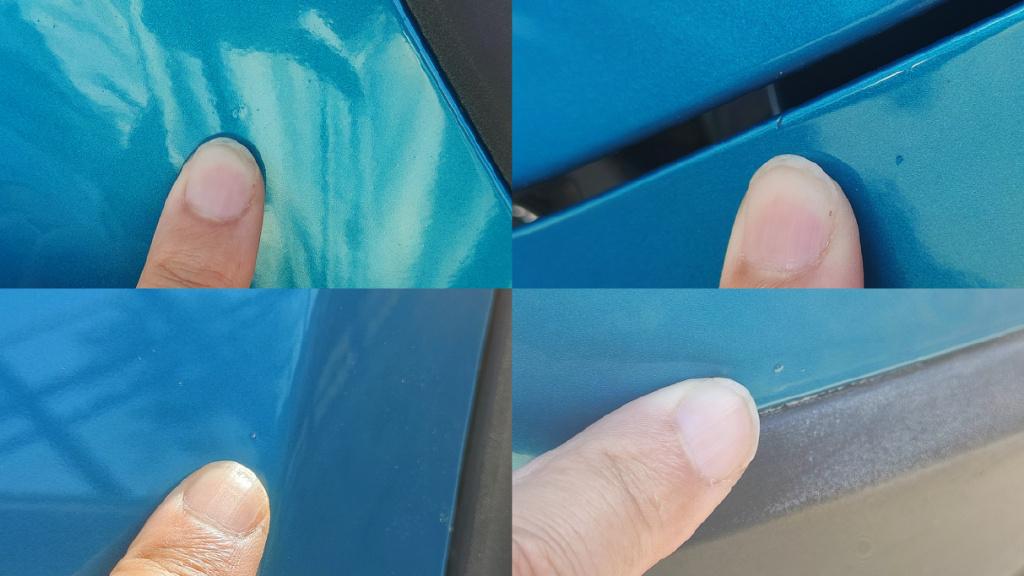 再次來到西安灃東新城極狐中心,看到這輛極狐阿爾法T之后,車叔真的略感震驚。原本不到米粒大的損傷倒是重新噴漆了,但在有限的噴漆面上,極狐中心的售后居然噴出了一大堆沙眼。這里大家可以看看下面這組維修后的實拍圖,由于角度問題還有一些沙眼并不太容易看到,但是在特定的光線、角度下還是非常明顯的。