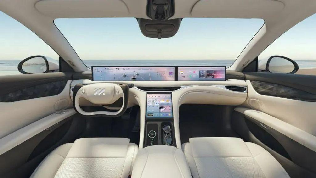 智界S7的座艙采用環抱式游艇設計,并沒有采用時下流行的大聯屏設計,12.3 英寸液晶儀表+15.6 英寸懸浮式中控屏屹立在中控臺上方,中控臺純平設計,在一體化穹頂設計的加持下,使得駕駛員的視野會更加開闊,不過液晶儀表與方向盤的距離比傳統設計要遠一些,需要一定的適應期。副駕駛位前方設計有純平多功能儀表臺,擁有超大的儲物空間,可收納日常用品及化妝品,同時副駕駛位還配有女王副駕,支持電動調節、腿托、按摩等功能,舒適度也非常不錯。車機方面,智界S7搭載華為HarmonyOS 4 車機系統,不僅支持3D車控,在盤古大模型的助力下,語音交互也更加自然,人機溝通更加人性化。華為平板還可通過 HUAWEI MagLink吸附在前排座椅后背,實現多屏聯動。不過就拓展可玩性,還是智己L6更高一些。