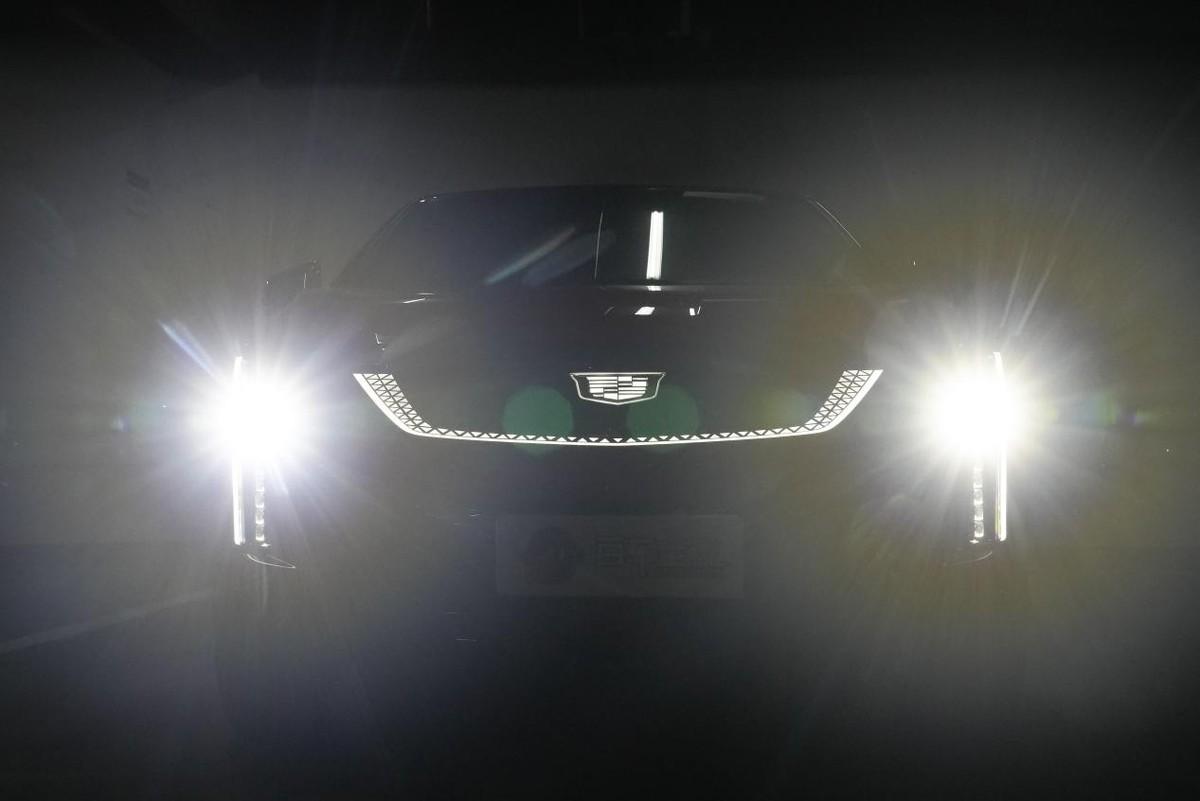 要說這車辨識度最高的地方,估計就是這前臉。15毫米流光星雨直列式LED大燈的獨特豎狀造型,在大馬路上一看就知道是凱迪拉克的車,而且這燈對工藝的要求很高,在15毫米寬度內塞入5顆LED燈珠,單側燈組一共有46顆燈珠,再通過9個透鏡組,達到36個遠光照明分區的矩陣效果。
