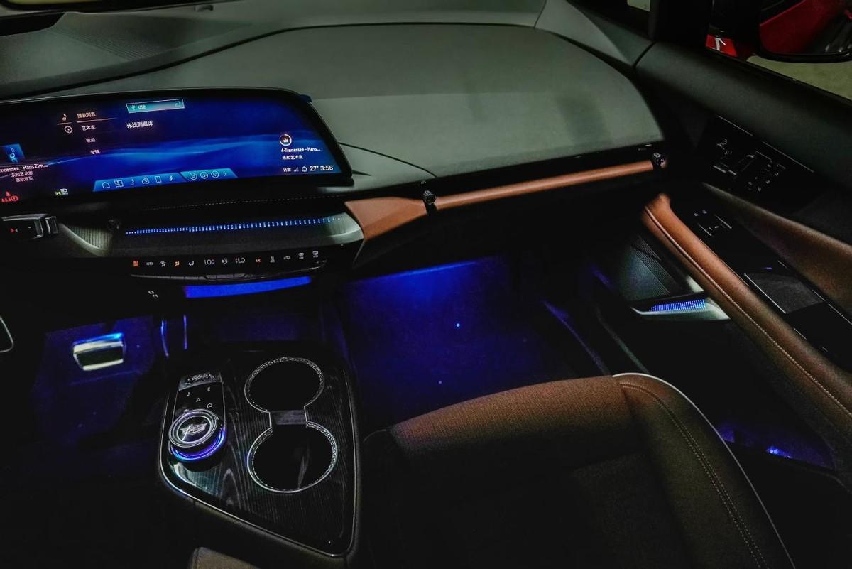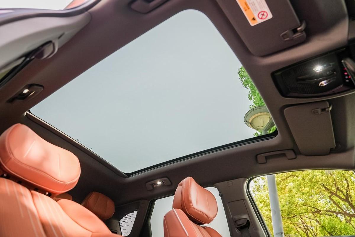 并且,在整車豪華氛圍的營造上,車內還搭載了15揚聲器的AKG音響系統,搭配126色的月光奏鳴氛圍燈,頭頂上還有1.6*1.2米的全景玻璃穹頂……放心,標配了一鍵電動開閉的遮陽簾,夏天也不怕曬。