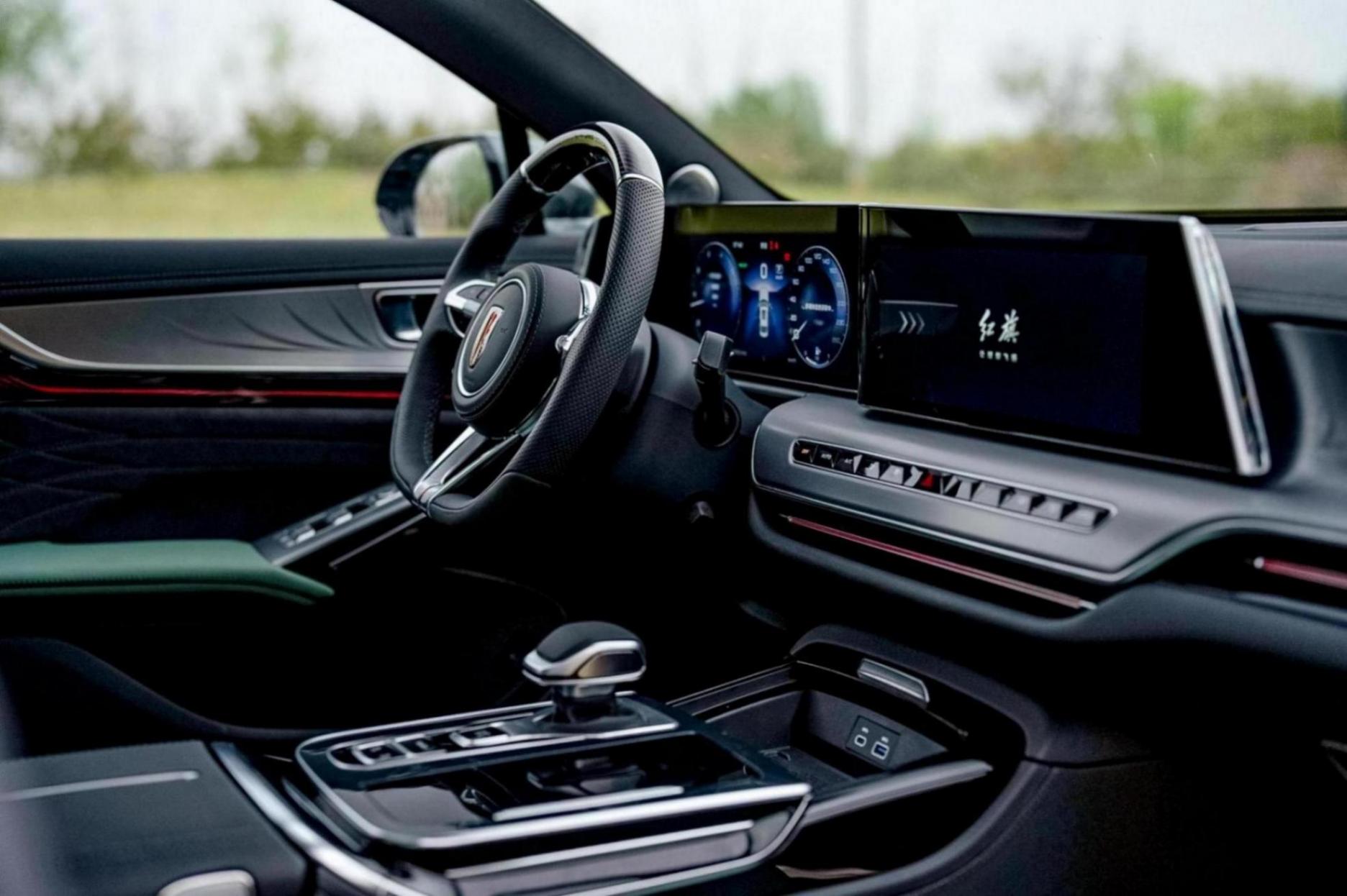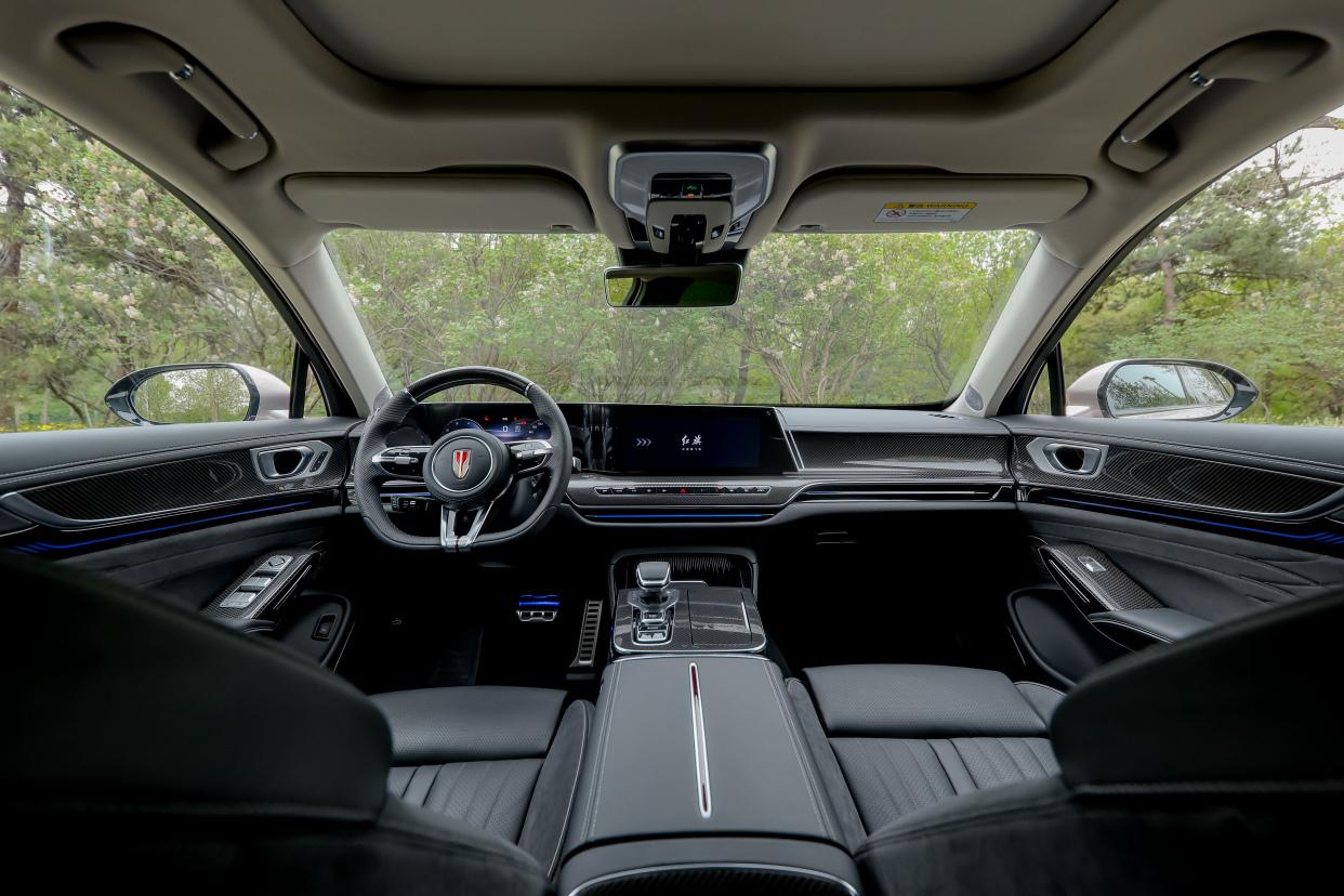 3、新紅旗H9的內飾設計既有豪華感又有科技感,豪華商務版的內飾采用木紋飾版點綴,私享風尚版的內飾采用防碳纖維飾板點綴,想要運動和奢華都可以,全新設計的“雙聯屏”由12.3英寸液晶儀表盤和12.3英寸中控屏幕組成,強化了內飾的科技氛圍,再加上游艇式電子擋桿,豪華感和科技感一下子就體現出來了。
