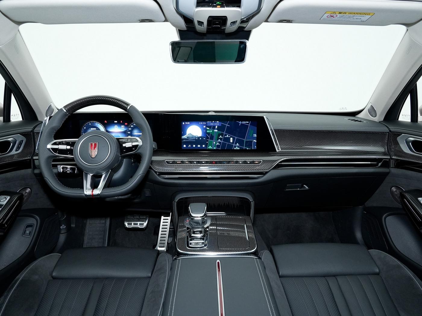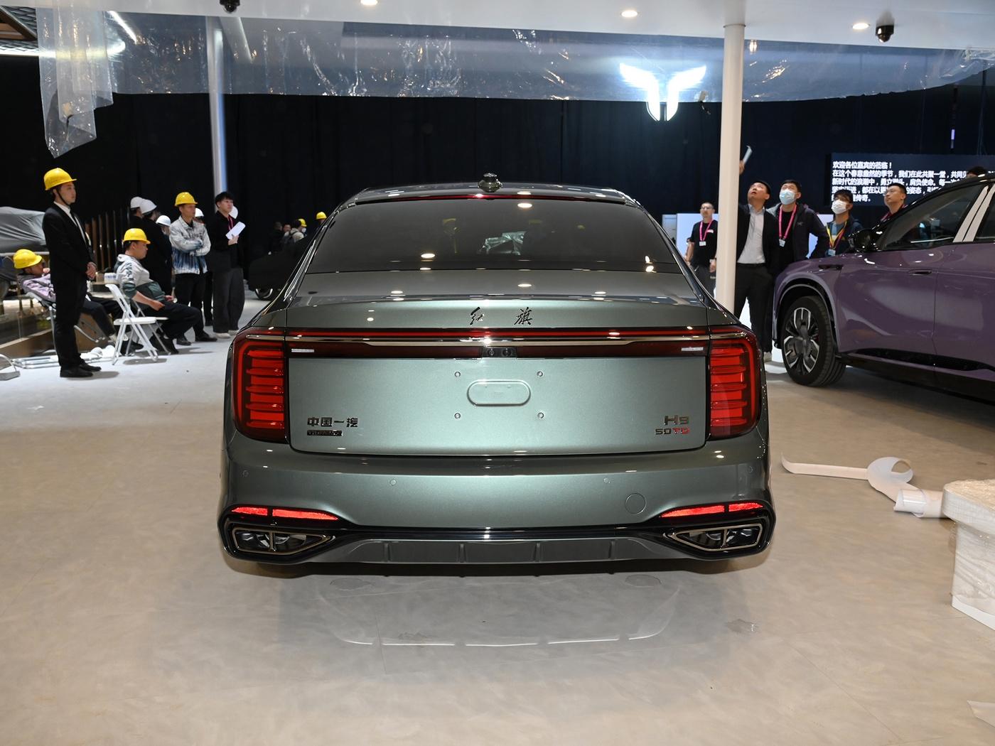 車尾部分,對(duì)尾燈進(jìn)行了升級(jí),由單燈20像素升級(jí)為單燈256像素,點(diǎn)亮后的視覺效果更加出眾,貫穿式尾燈也提升了車尾的辨識(shí)度,而且尾燈上方的“紅旗”二字是一代偉人的筆跡。再往下看,后包圍兩側(cè)還有雙邊共四出排氣裝飾,實(shí)際上它是雙邊共兩出排氣尾喉,強(qiáng)化了車尾的運(yùn)動(dòng)效果。