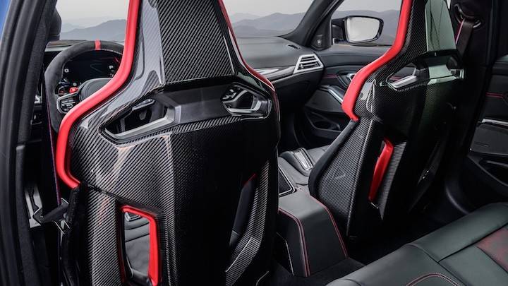 M3 CS Touring 在輕量化的工程上,包含使用碳纖維強化塑料制成的引擎蓋、前擾流板、進氣口、后分流器及后視鏡蓋。同樣材質也應用在中央扶手、內飾飾板及換檔撥片上,而 M Carbon 桶型座椅則進一步減重。讓 M3 CS Touring 相較于標準 M3 Touring,在車重方面減輕達 15 公斤。