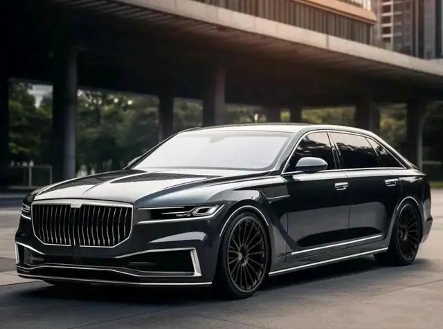 這兩個版本的大體輪廓很相似,給我的感覺和賓利飛馳差不多,不過在細節部分,還是有所區別的,比如版本二的中網遵循了紅旗汽車的家族化設計,貫穿式LED日間行車燈環繞中網的左右和下方,讓前臉顯得更有辨識度。版本三的中網底部沒有相連,有點寶馬的“雙腎型”中網的既視感,大燈造型也比較普通,和中網的上部在同一水平面上,提升了前臉的橫向視覺寬度,底部的下格柵采用了貫穿式設計,讓前臉顯得更寬闊。當然,這兩個版本的前引擎蓋上都有三道隆起的筋線,只不過沒有版本一那么夸張罷了。