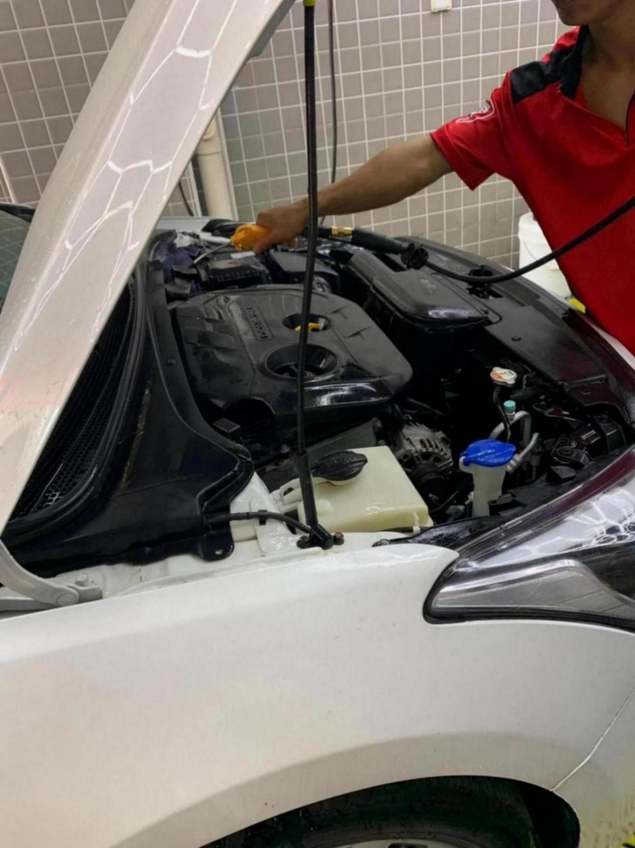 第一,沖洗發(fā)動機艙時,一定一定要注意,發(fā)動機內(nèi)的線路啊接頭啊這些部位。這些線路的接頭一定不能夠用水槍持續(xù)的長時間的對著沖洗,雖然做有防水的設(shè)計,但水槍的水壓太大了,長時間沖洗的話,還是會有進水短路的可能。一般咱們自己沖洗發(fā)動機艙的話,就短時間快速用水槍沖一遍過,就能把上面的灰塵給沖洗掉。