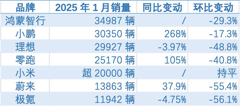 2月1日,多家造車新勢力陸續公布了2025年首月的銷量數據。受春節車市銷售淡季的影響,今年1月的汽車消費市場整體表現不及去年年末,不少車企的銷量出現了較為明顯的環比下滑。不過,相較于2024年1月,車市仍舊實現了顯著的同比增長。