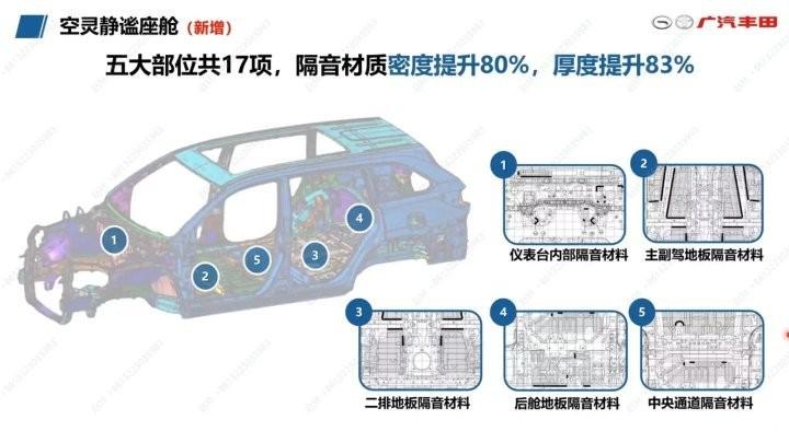 最后則是提升了NVH性能,5大部位17項(xiàng)隔音材質(zhì)升級(jí),包括了二排地板、后備箱地板、中央通道、主副駕駛地板、儀表臺(tái)內(nèi)部提升了隔音棉的密度和厚度,提升用戶駕駛舒適性和滿意度。