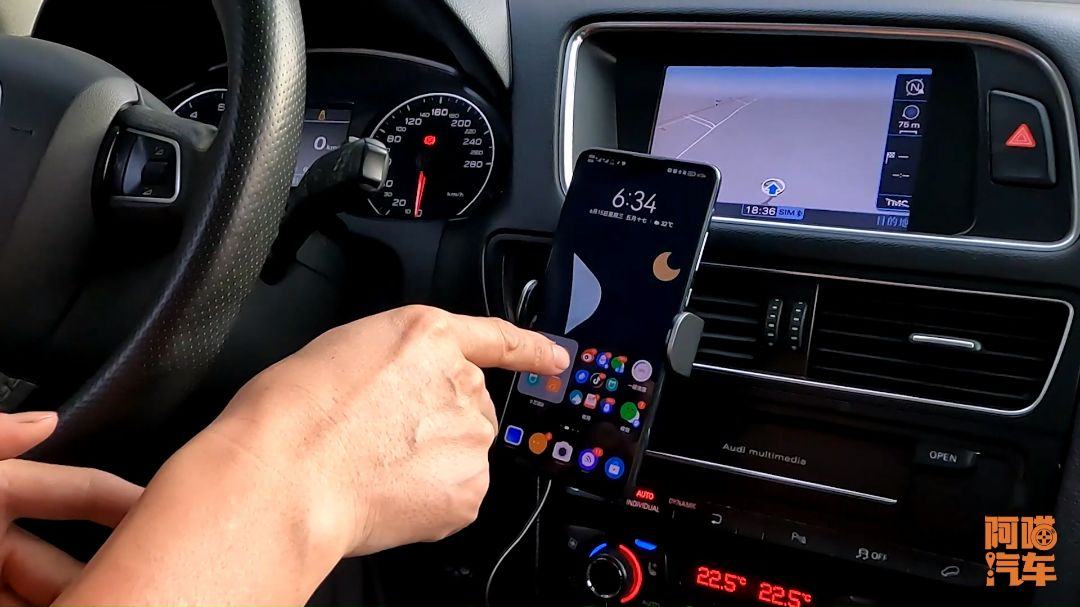 因?yàn)閺奈铱拷囎娱_始,車子自動(dòng)解鎖,然后我上車之后,我手機(jī)往車上一扣,這個(gè)時(shí)候,我手機(jī)上的軟件,就直接同步到車機(jī)上面去了。