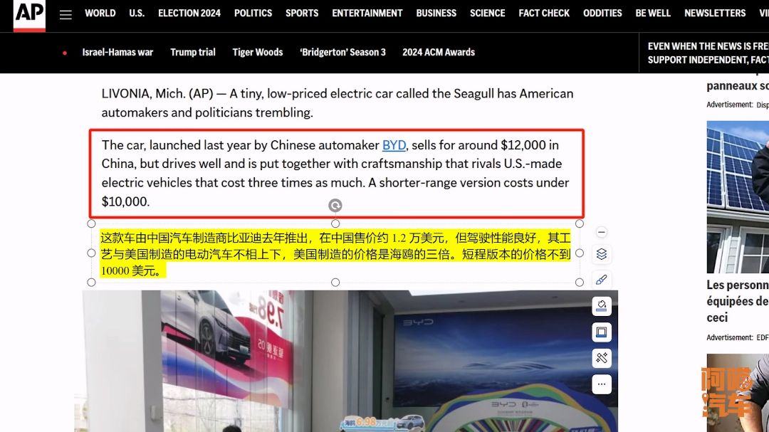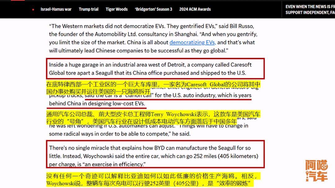 美聯(lián)社把它弄過(guò)去拆的時(shí)候,美國(guó)網(wǎng)友都感慨,要是以比亞迪就造海鷗這個(gè)能力。把這個(gè)車弄到美國(guó)去賣,你別說(shuō),現(xiàn)在他們是加收100%的關(guān)稅了,你就加收200%的關(guān)稅,人家說(shuō)了這車也有競(jìng)爭(zhēng)力。