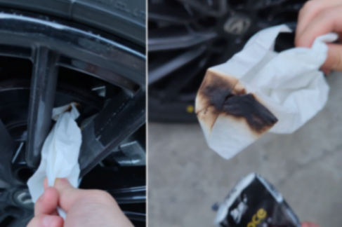 在他發布的視頻中,可以看到,該網友在停車后,嘗試用紙巾靠近汽車剎車盤,短短幾秒,紙巾就開始變色,并冒出淡淡的輕煙,可見當時剎車盤溫度之高,他所說的“冒煙”真不是夸張。