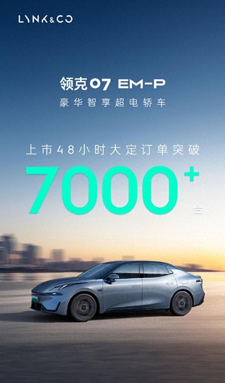 近日,領克汽車官方透露,在5月17日上市的領克07 EM-P正式開啟交付,新車共有3款車型,售價16.98萬-18.98萬,限時領享價為16.38萬-18.38萬。值得一提的是,新車自上市后48小時,訂單已經突破了7000臺。