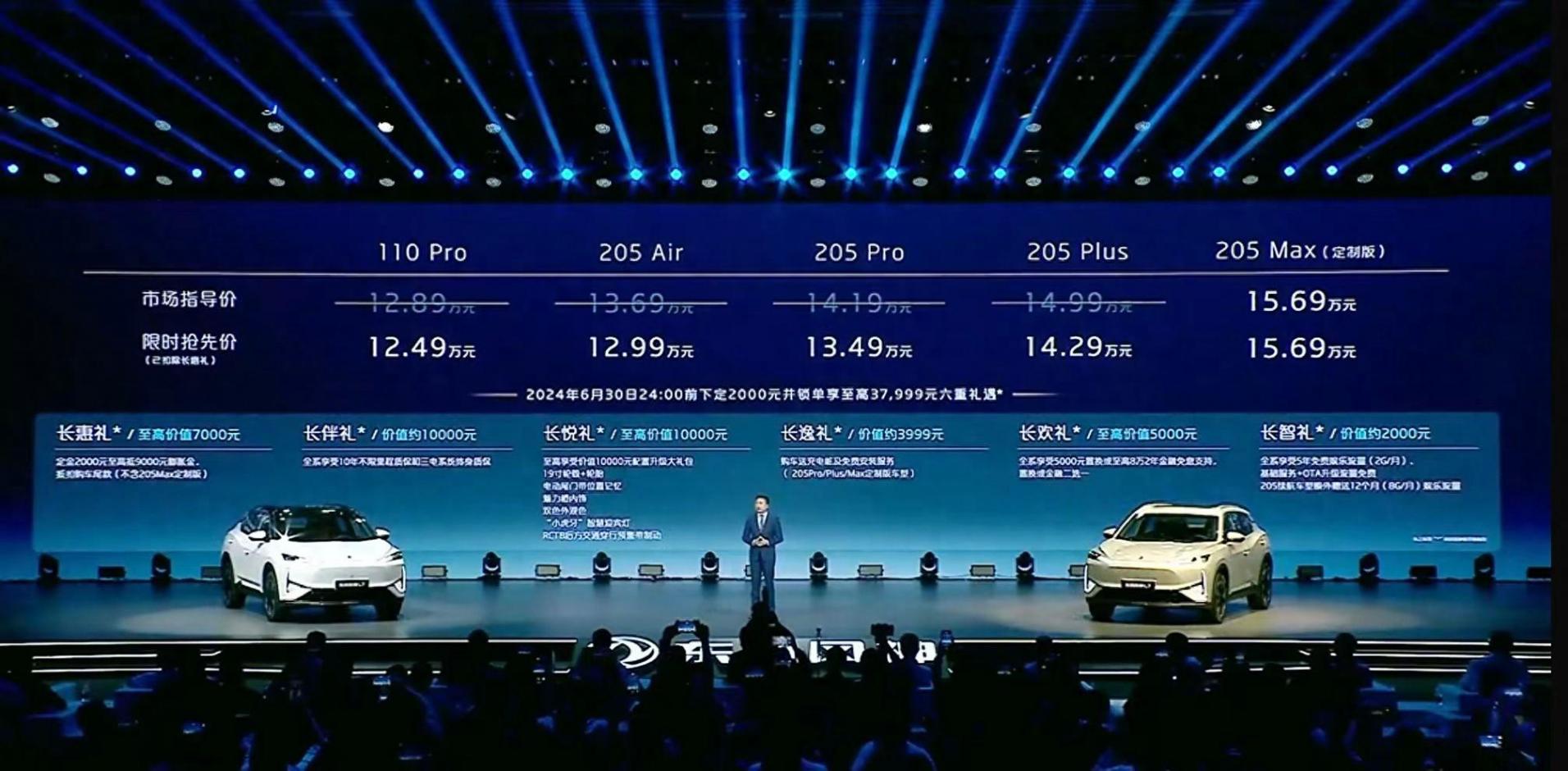 動力方面,新車搭載1.5T發(fā)動機與電動機組成的插電式混合動力系統(tǒng),綜合功率265千瓦,綜合扭矩615牛·米,0-100km/h加速時間為6.9秒。續(xù)航方面,新車CLTC工況純電續(xù)航分別為110km和205km,CLTC工況綜合續(xù)航分別為1400km和1500km,饋電油耗3.8L/100km。此外,新車支持3.3kW對外放電功能。