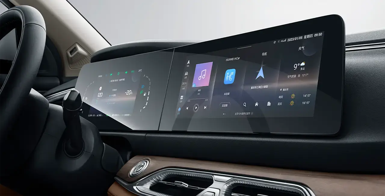 內部設計,新車采用了中式美學設計,大量仿實木的裝飾面板凸顯了東方韻味。此外,還匹配了雙12.3英寸的貫穿式大屏,內置的是高德地圖以及華為Hicar車機系統,7英寸液晶行車電腦,皮質座椅。此外,還擁有超大的全景天窗,前瞻性的智能輔助駕駛系統,比如并線輔助開門預警,盲區監測。