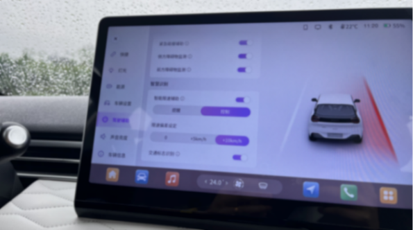第二個是L2級輔助駕駛,并支持0-140KM/h跟車ACC,5檔車距調節。這里稍微補充一下,這次試駕也稍微體驗了一下這個功能,各項指標跟它的自動泊車在行業中的水平基本一致,在路況一般或很好的情況下,解放你的雙手雙腳是沒問題的。