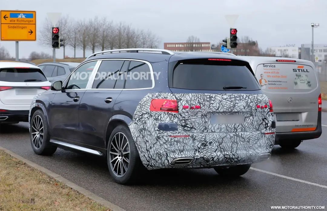 因為它是一次改款,因此側面的比例和設計都沒有改變,有可能新車會提供新的輪圈樣式。而在車尾,新的尾燈組已經(jīng)清晰可見,和奔馳E級一樣,新的GLS也將收獲更多類似奔馳Logo的新尾燈,考慮到它是旗艦級別,所以,單側尾燈可能有三個三角形燈帶,未來的改款S級也可能如此。