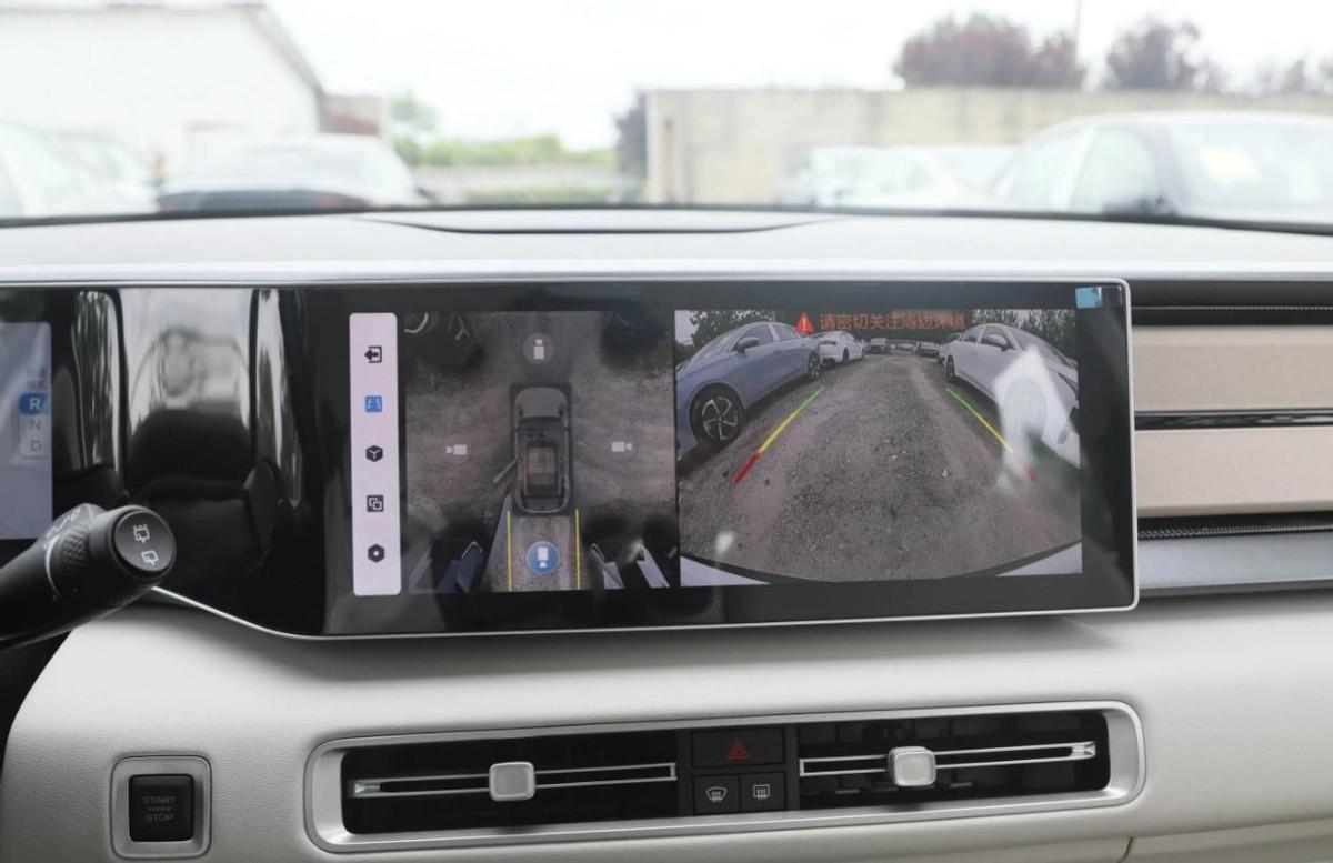 首先軸距短,轉彎半徑小,其次全系標配了540°全景影像,掛R擋時,4個廣角攝像頭通過360°全景影像+180°底盤透視,全方位監測路況,馬路牙子這些都可以判斷,減少盲區。