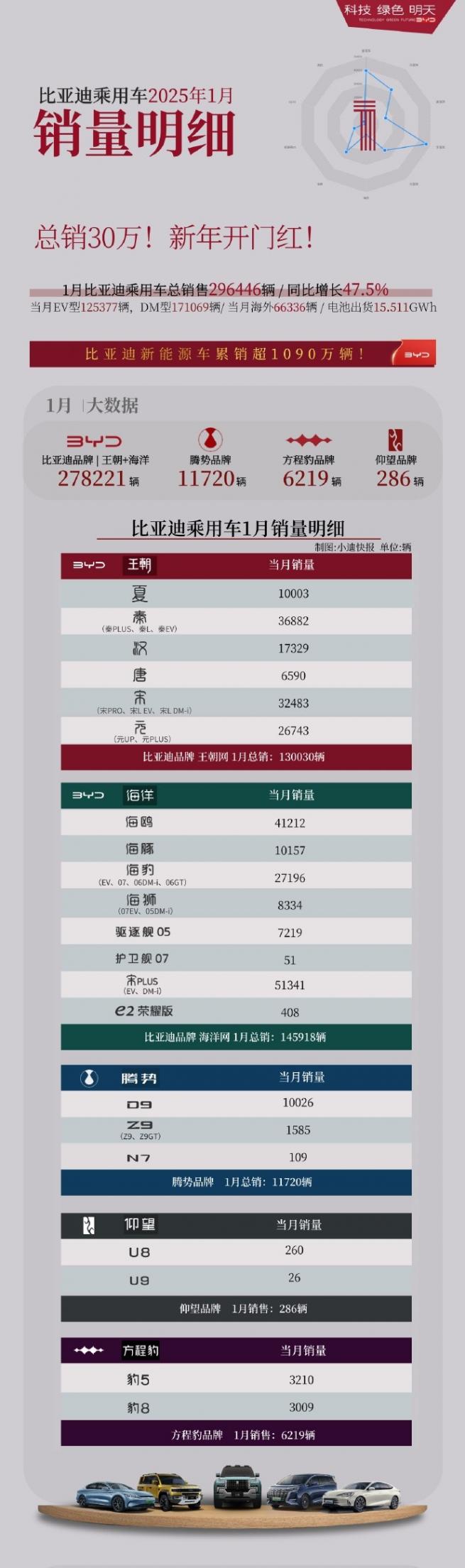 總的來說,比亞迪1月份的銷量成績單真是讓人眼前一亮,各款車型都展現(xiàn)出了不俗的實力!