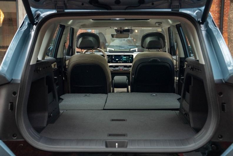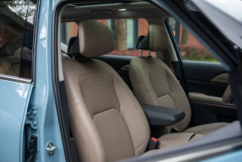 從使用場景來看,EV5的第二排座椅可以完全折疊至平整,因?yàn)槎抛鶋|可以先往下移動,再將靠背容納下來。而宋PLUS EV則采用了標(biāo)準(zhǔn)的僅翻折靠背的設(shè)計(jì),所以平整度稍有欠缺。