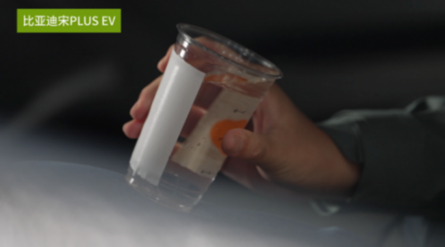 我們讓讓身高195厘米的男性(力臂更長,末端高度變化更明顯)落座在兩車后排并在膝蓋上放一個盛水的杯子。在EV5上膝點(diǎn)較低坐姿更自然,因此杯子不會傾斜太多,能盛更多的水。而坐進(jìn)宋PLUS EV之后膝點(diǎn)更高,杯子更傾斜,因此盛的水就更少。
