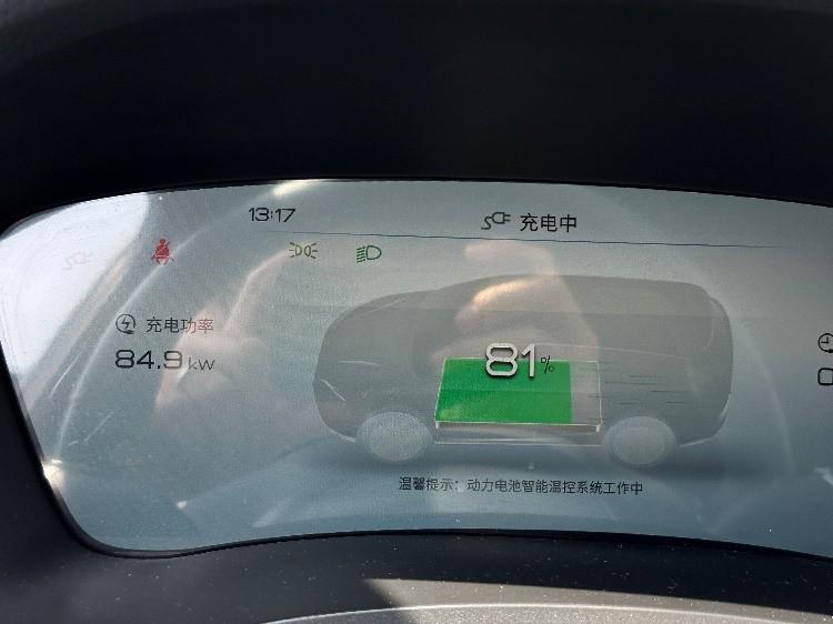 比亞迪完成60%-80%區(qū)段充電的時(shí)長也是16分鐘,電池包本身更高的額定電壓優(yōu)勢在這部分并沒有得到體現(xiàn)。此外,宋PLUS EV在充電時(shí)儀表上顯示的信息略顯單調(diào),只有電量百分比與實(shí)時(shí)功率。而EV5則可以顯示充至80%以及所設(shè)定電量所需要的時(shí)間,更利于駕駛員管理時(shí)間。