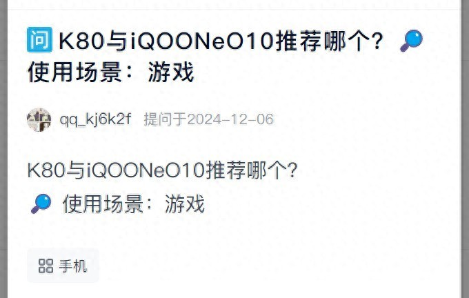 最近我們?cè)诤笈_(tái)收到了用問(wèn),使用場(chǎng)景主要是游戲,紅米K80和iQOO Neo10怎么選?今天我們給大家統(tǒng)一解答一下。