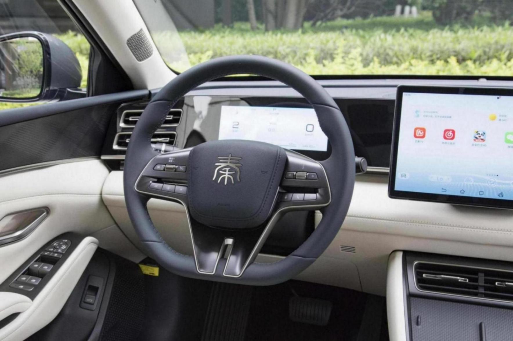內飾方面,車內的布局采用了比較簡潔的設計,配備了全新造型的多功能平底方向盤。同時還配備了8.8英寸的液晶組合儀表和10.1英寸的懸浮式中控屏,并內置了DiLink車機系統,支持手機APP遠程控制車輛、NFC鑰匙、車聯網、OTA升級和語言識別控制系統等等。