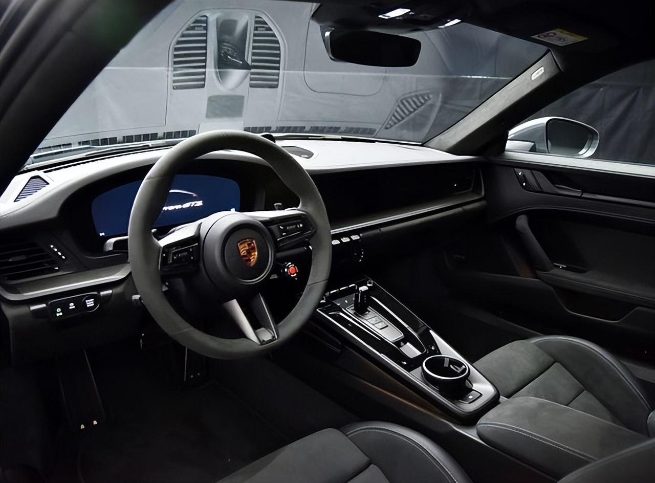 車身也保留了保時(shí)捷911 經(jīng)典的輪廓,優(yōu)雅流暢的弧線形車頂設(shè)計(jì),最抓人眼球的當(dāng)屬它配備的21英寸的雙五輻熏黑輪圈,采用中央鎖止結(jié)構(gòu)的輪圈明顯就是賽車技術(shù)的下放。輪圈內(nèi)部配備大尺寸打孔剎車盤以及6活塞黃色制動(dòng)卡鉗,輪胎尺寸分別為245/35 ZR20(前輪)和315/30 ZR21,型號為固特異鷹馳F1 SUPERSPORT R高性能輪胎。溜背式的車尾配備了直立式的散熱孔,雙豎杠式的高位剎車燈設(shè)計(jì),醒目的貫穿式LED光帶設(shè)計(jì)和夸張的碳纖維底部擴(kuò)散器設(shè)計(jì),中置雙出的排氣,那個(gè)熟悉的保時(shí)捷911又回來了,這一次換代后,它更像是保時(shí)捷911 GT3 RS的感覺。